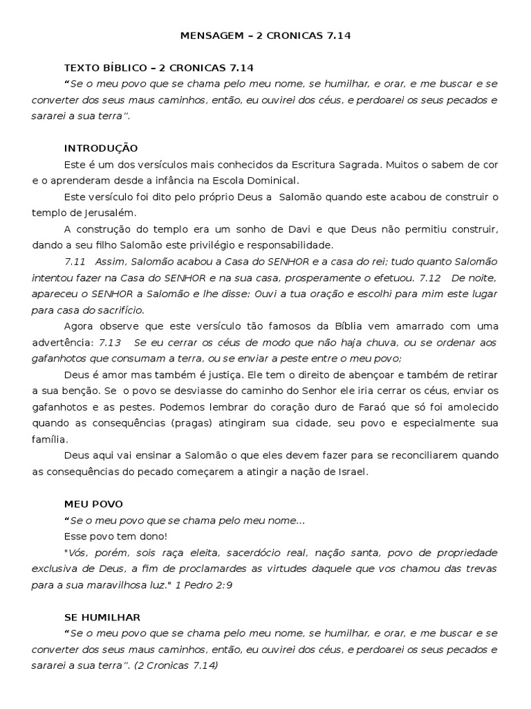 Mensagem - 2 Cronicas 7.14 | Pecado | Salomão